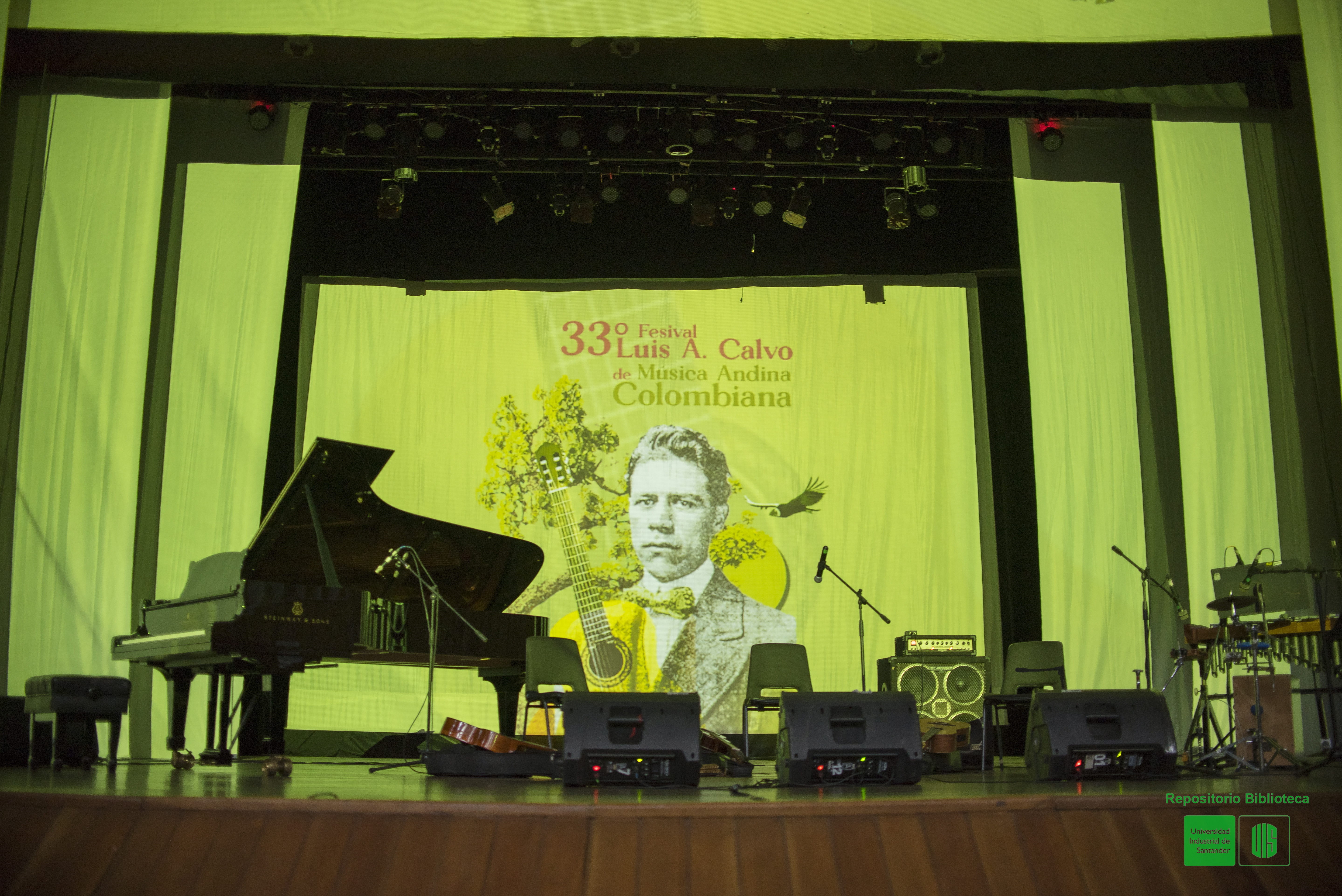 Opening image of the 33rd Luis A. Calvo Festival of Colombian Andean Music, held at the Luis A. Calvo Auditorium. Organized by: Cultural Directorate. Made on May 28, 2024.